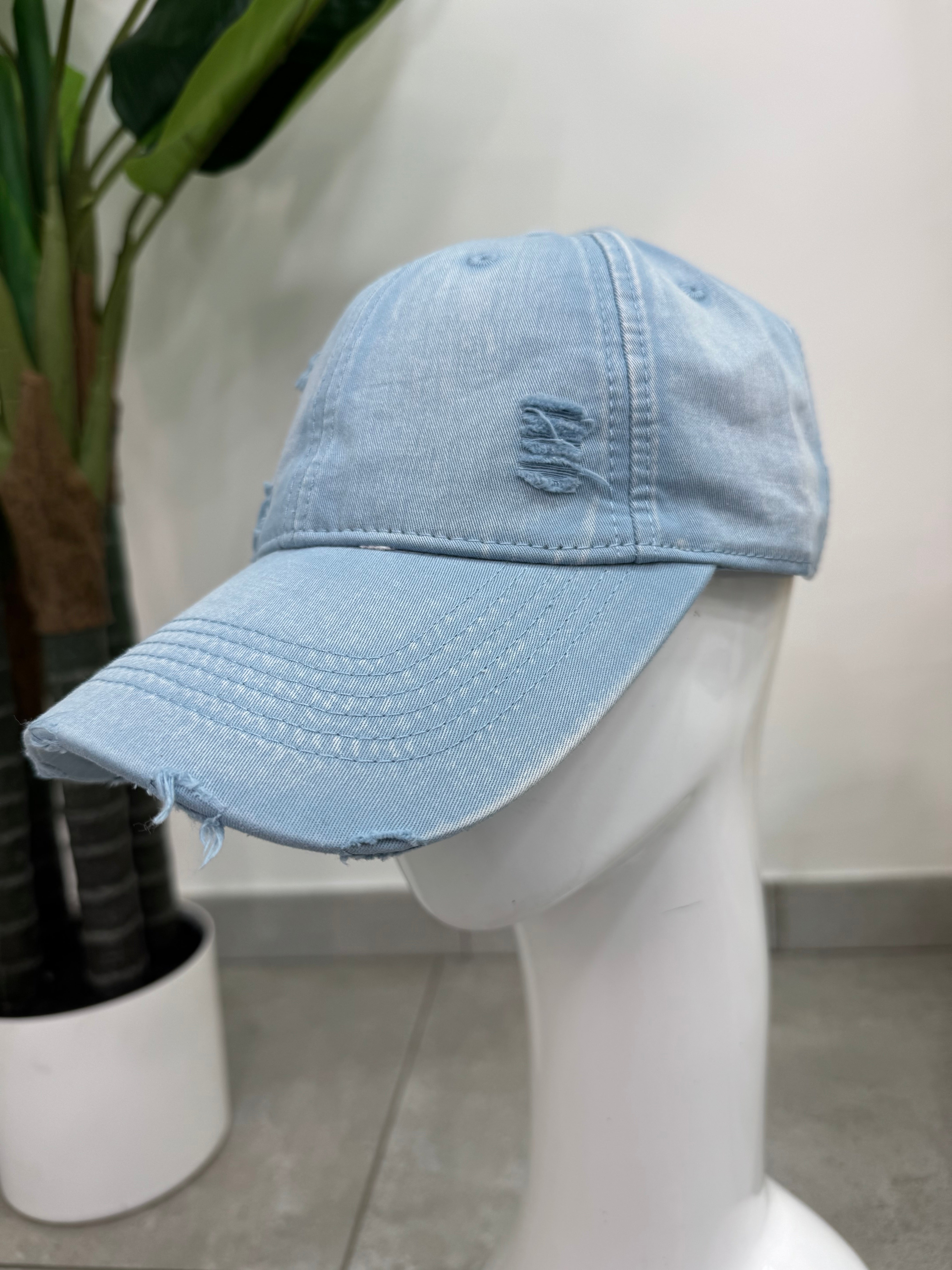 Cappello berretto effetto Denim con strappi, regolabile.