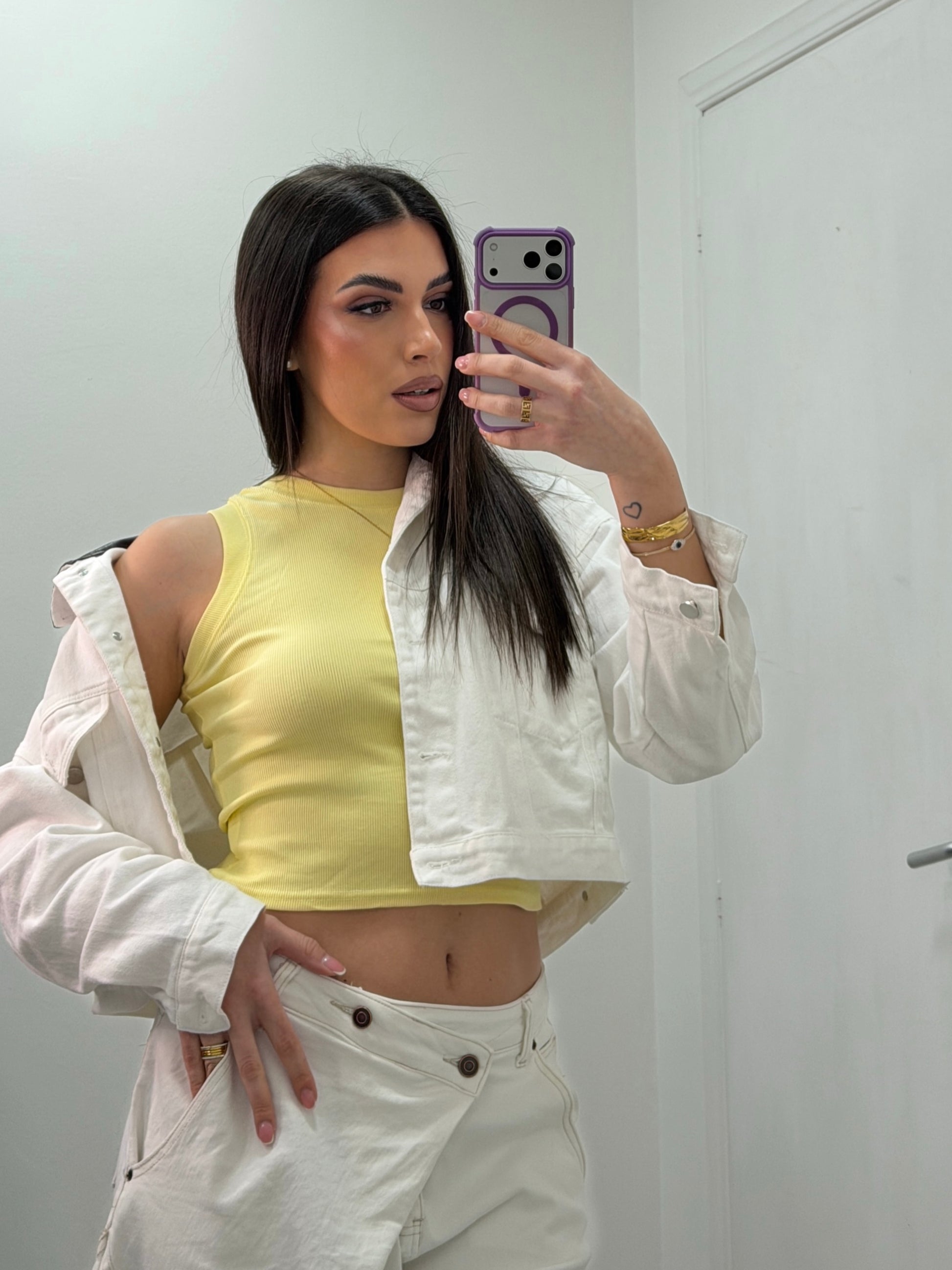 Canotta crop a costine girocollo.