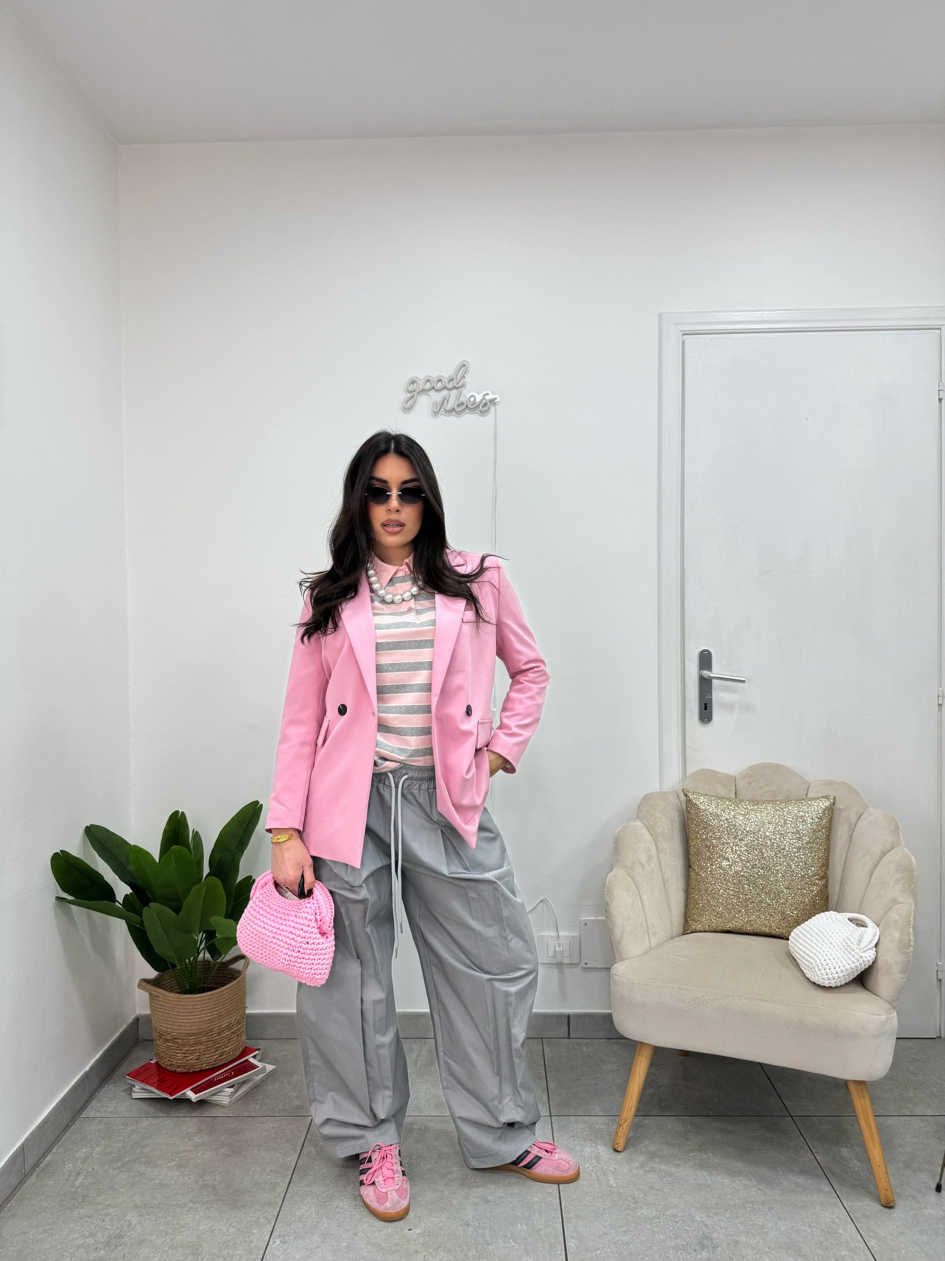 Pochette in tessuto cucita con uncinetto, con manico e tracolla.