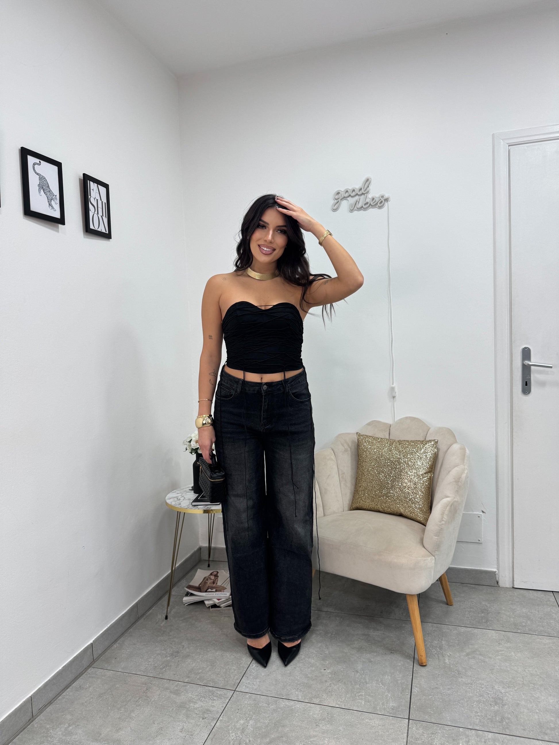Crop top scamosciato a fascia con stringhe regolabili, cerniera lampo dietro. Coppe preformate.