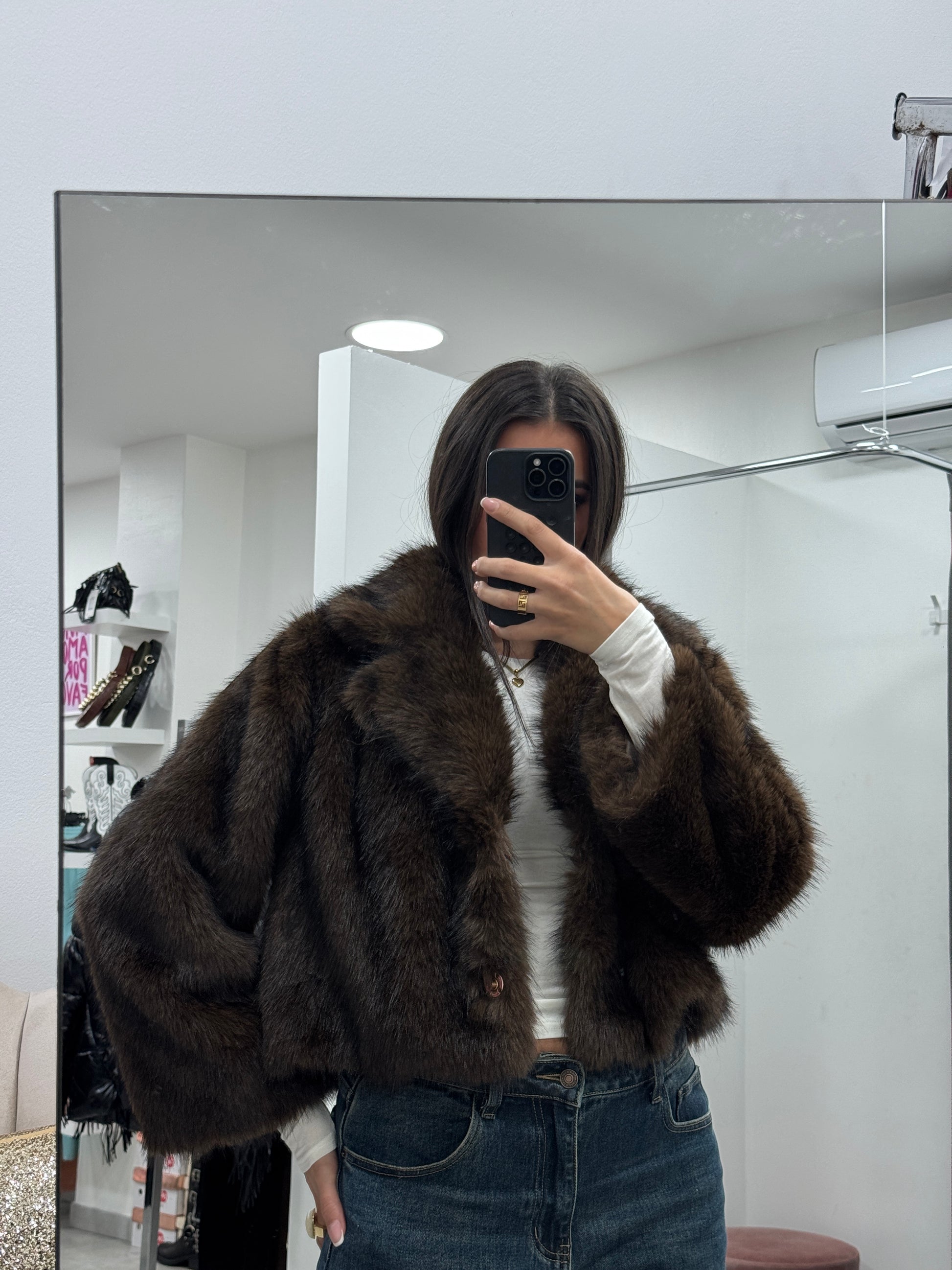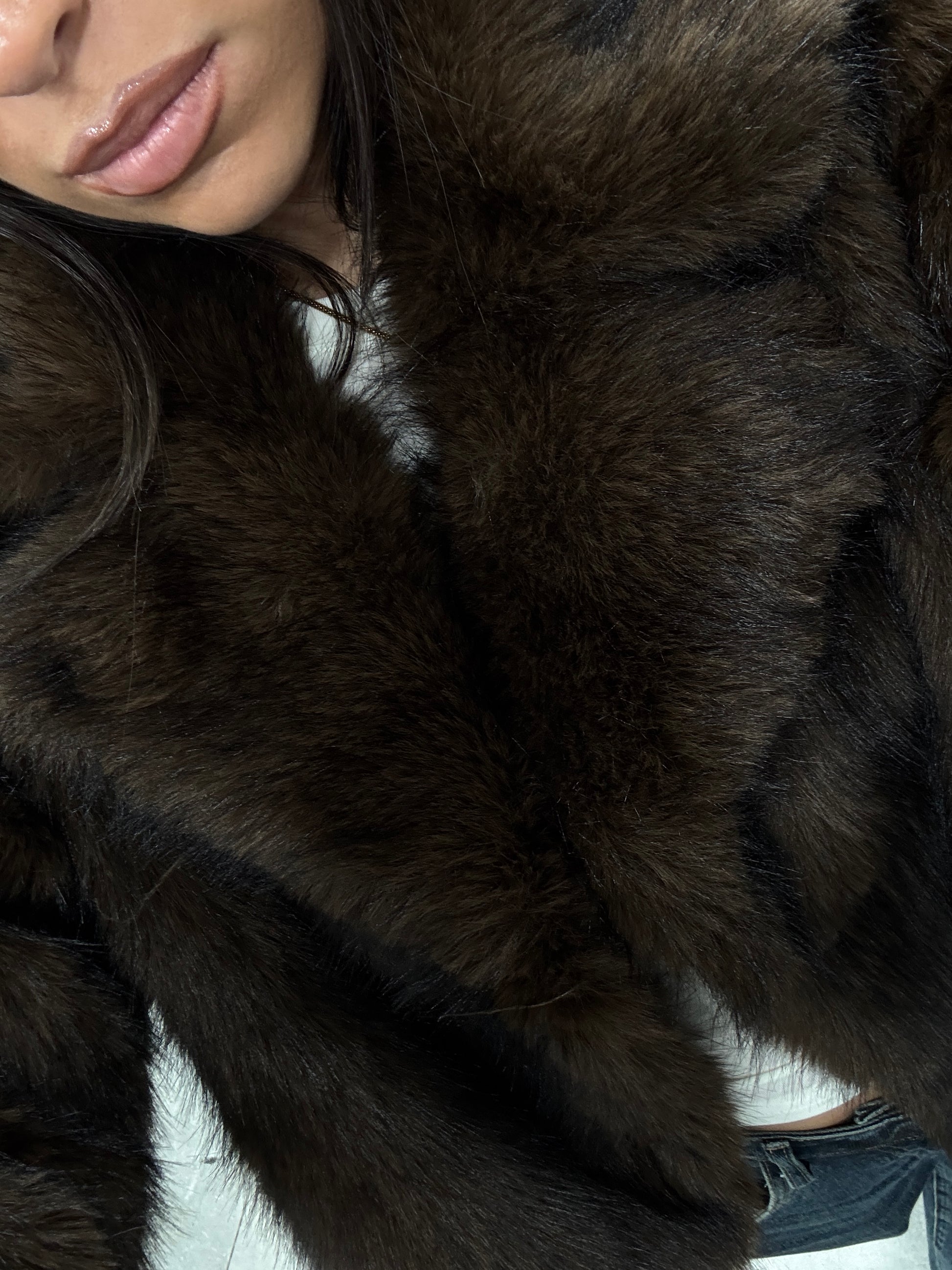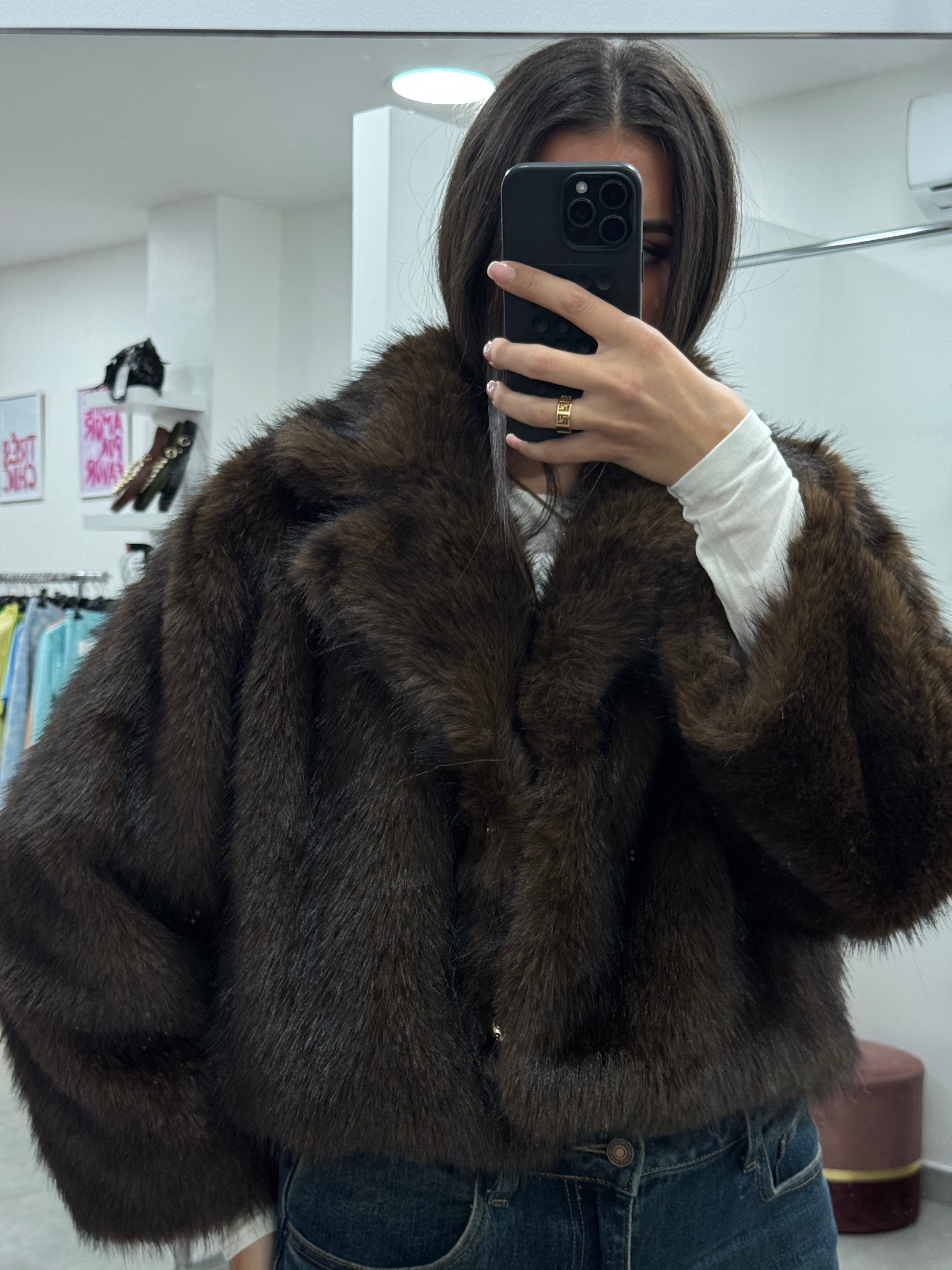 Ecopelliccia foderata internamente, tasche laterali chiusura con bottoni.
