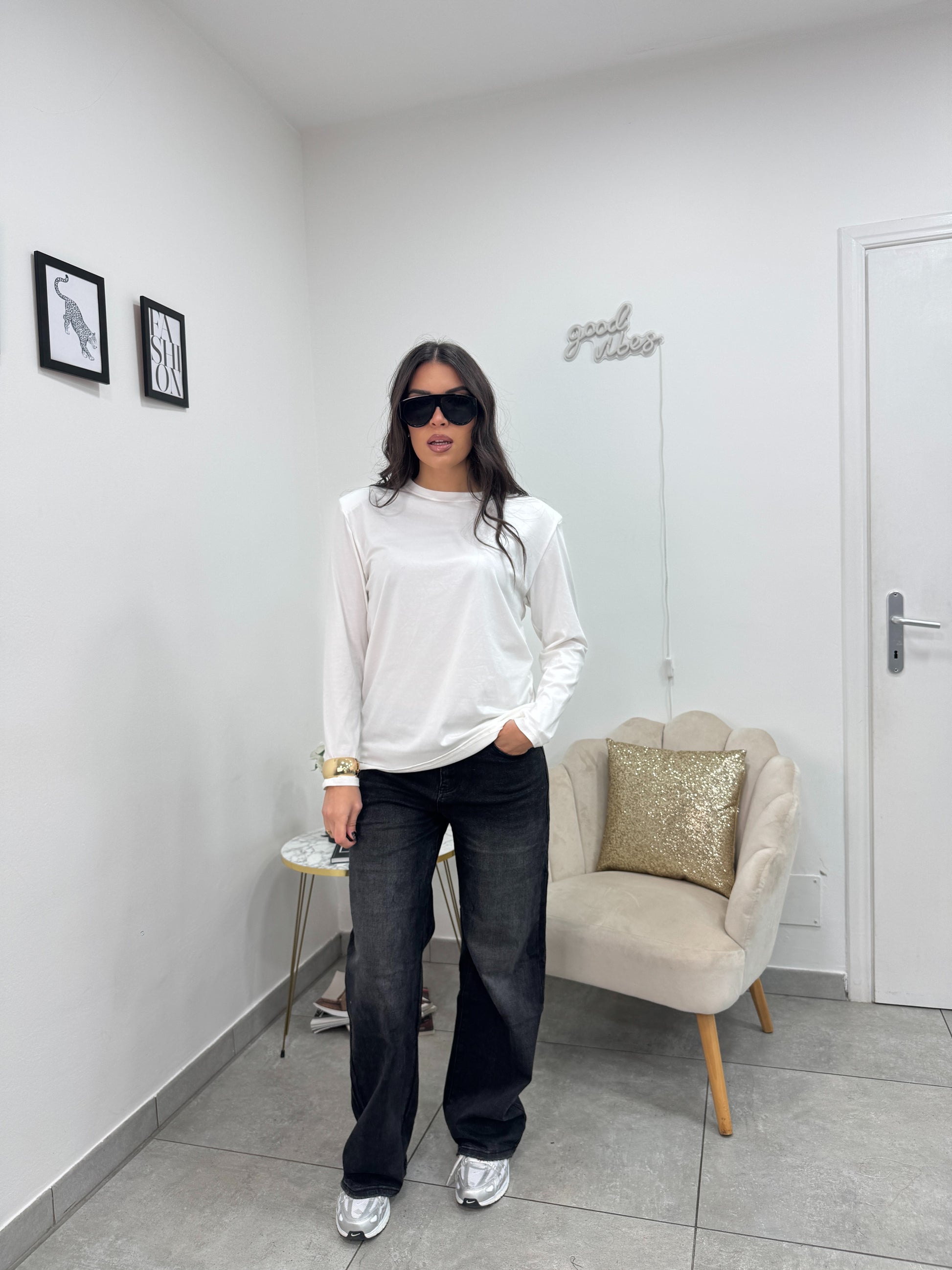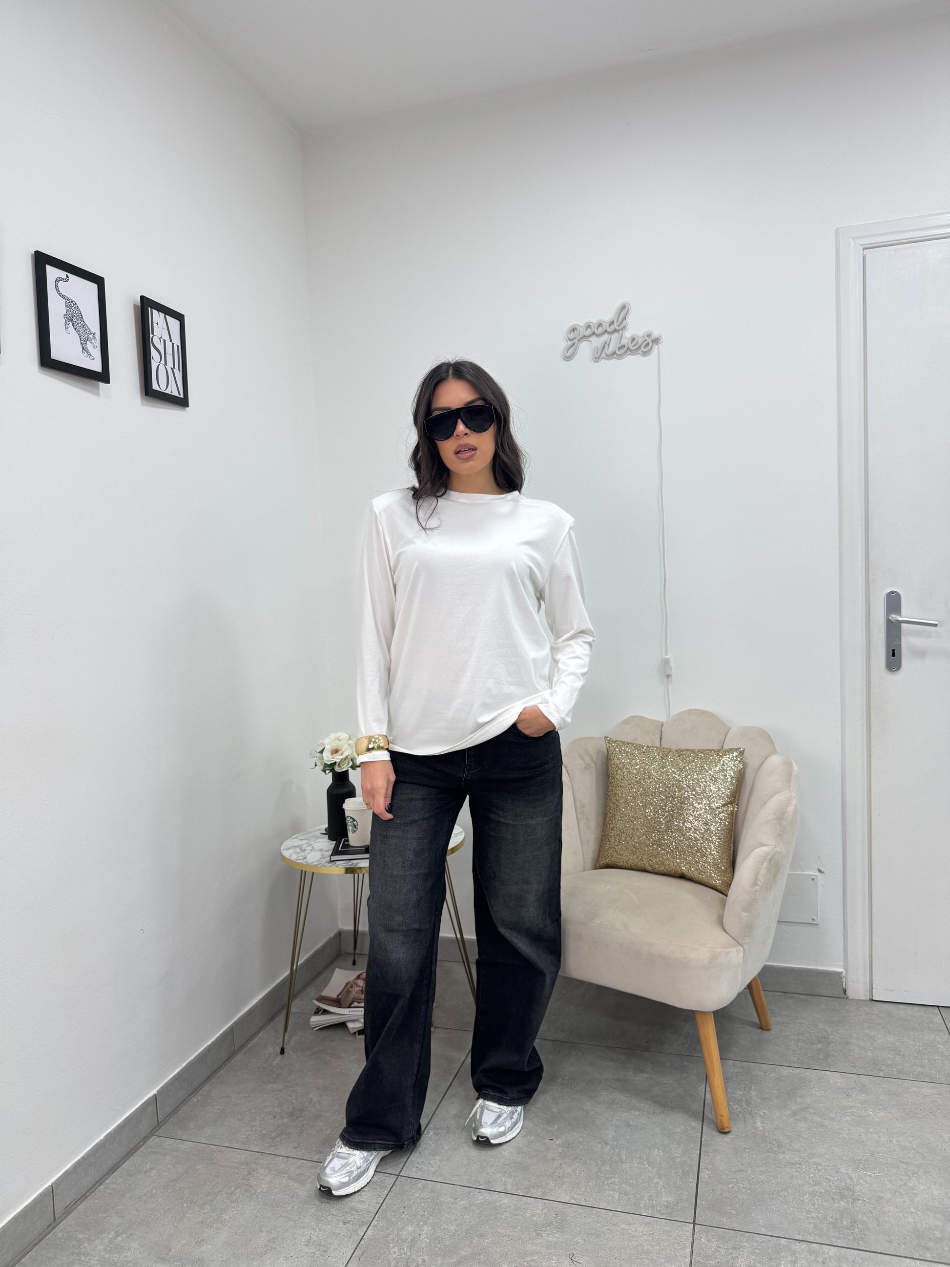 Maglia maniche lunghe oversize con spalline tinta unita.