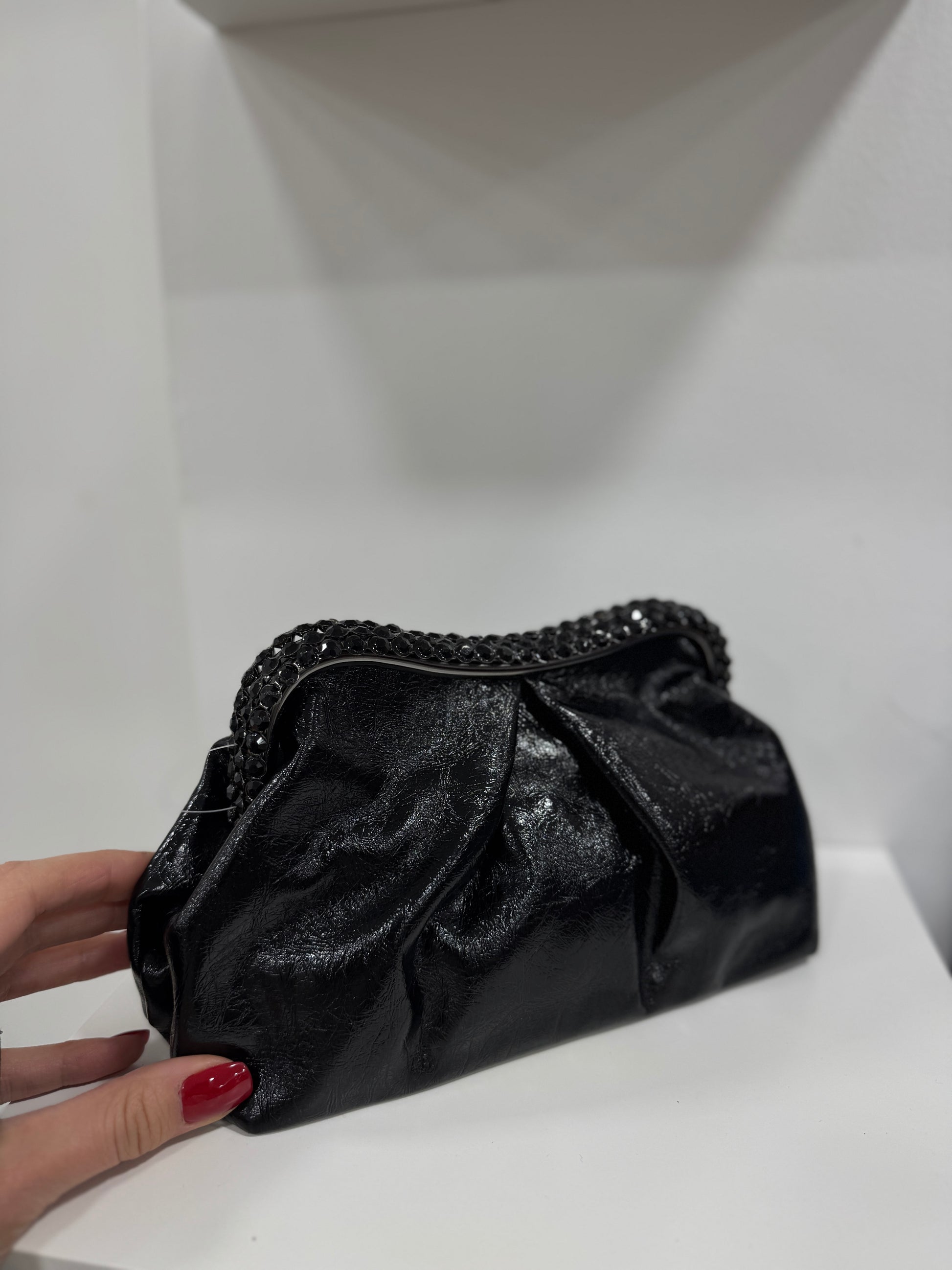 Pouch a calamita in ecopelle con strass.