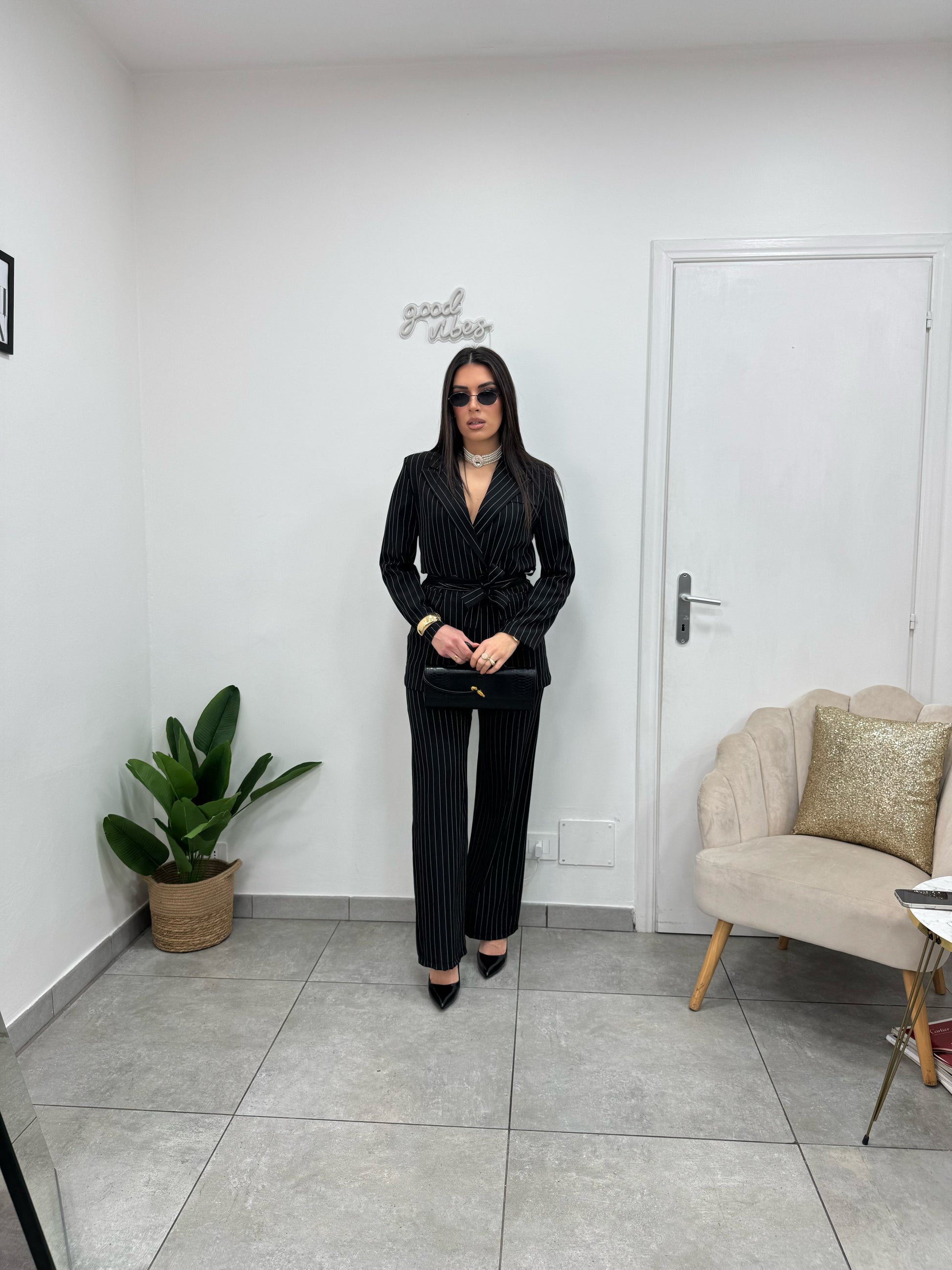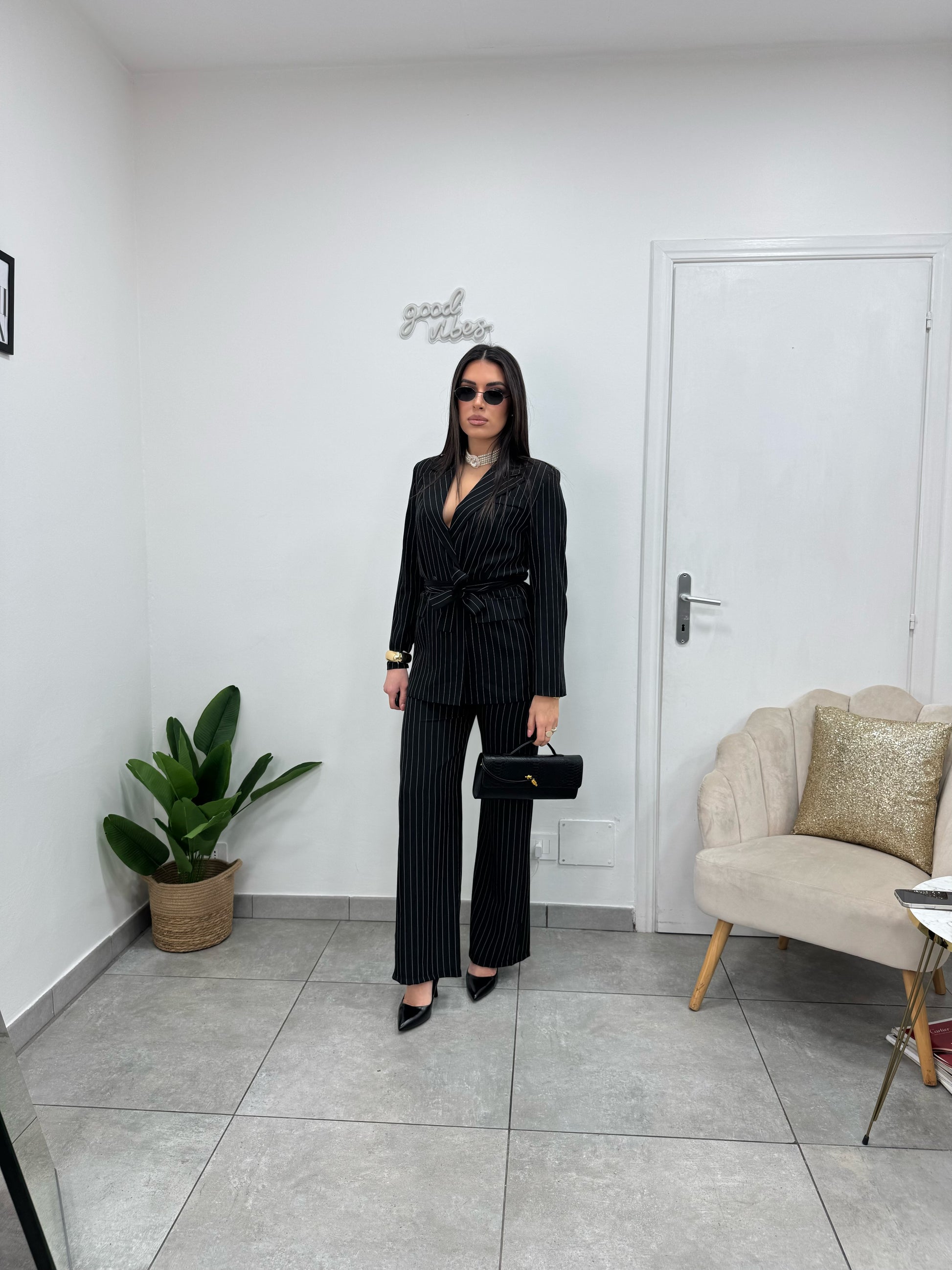 Tailleur Gessato Nero