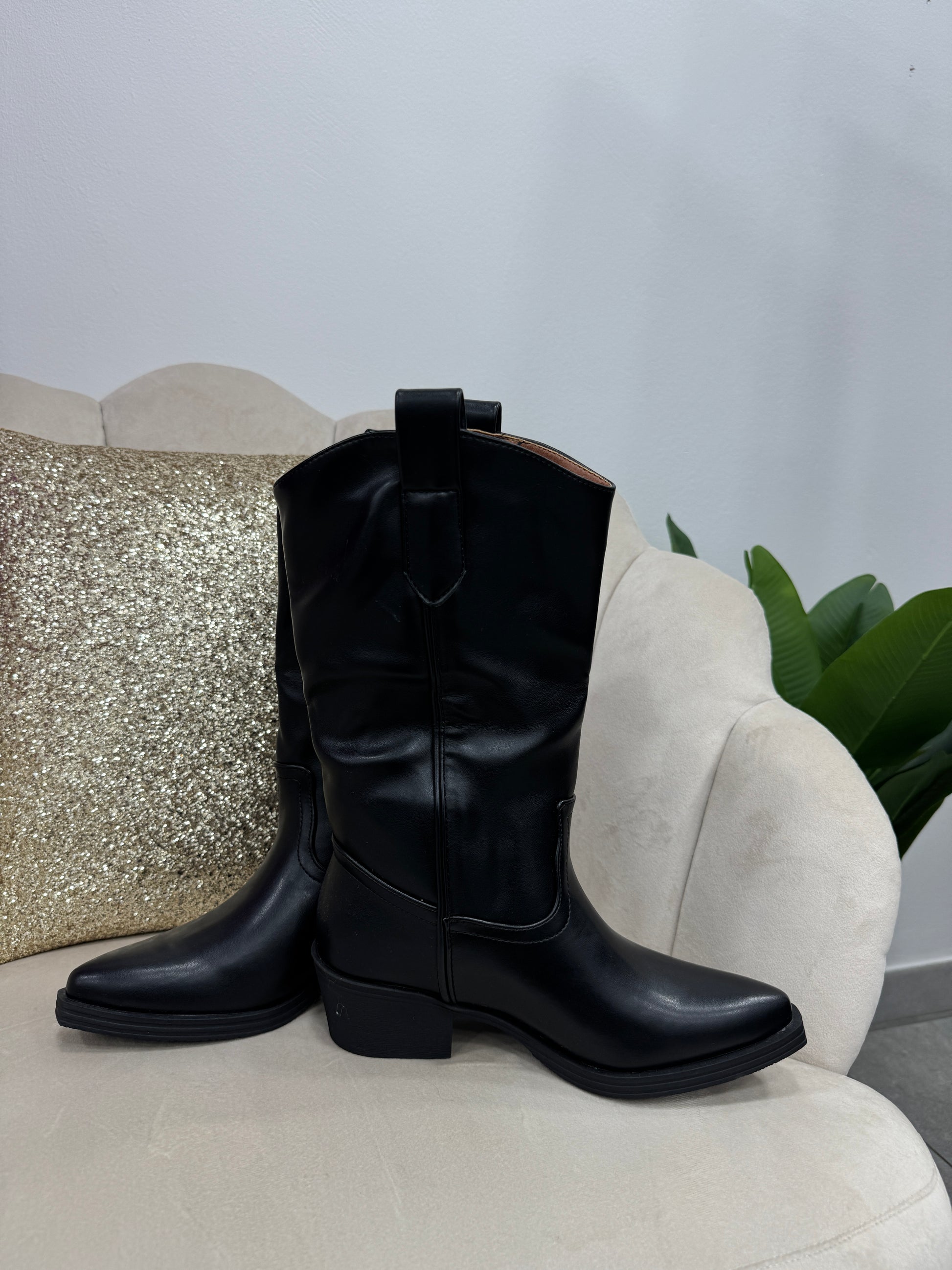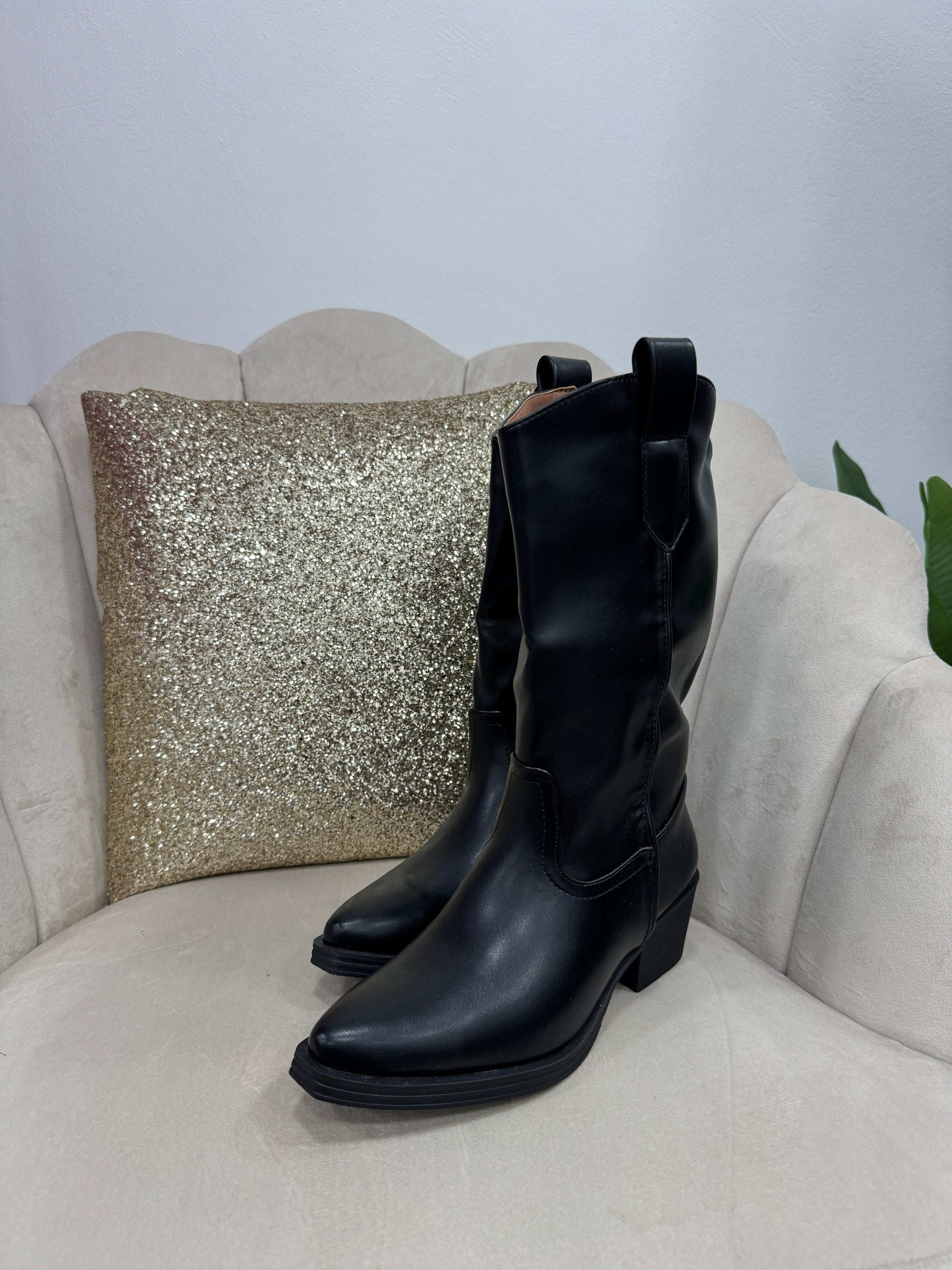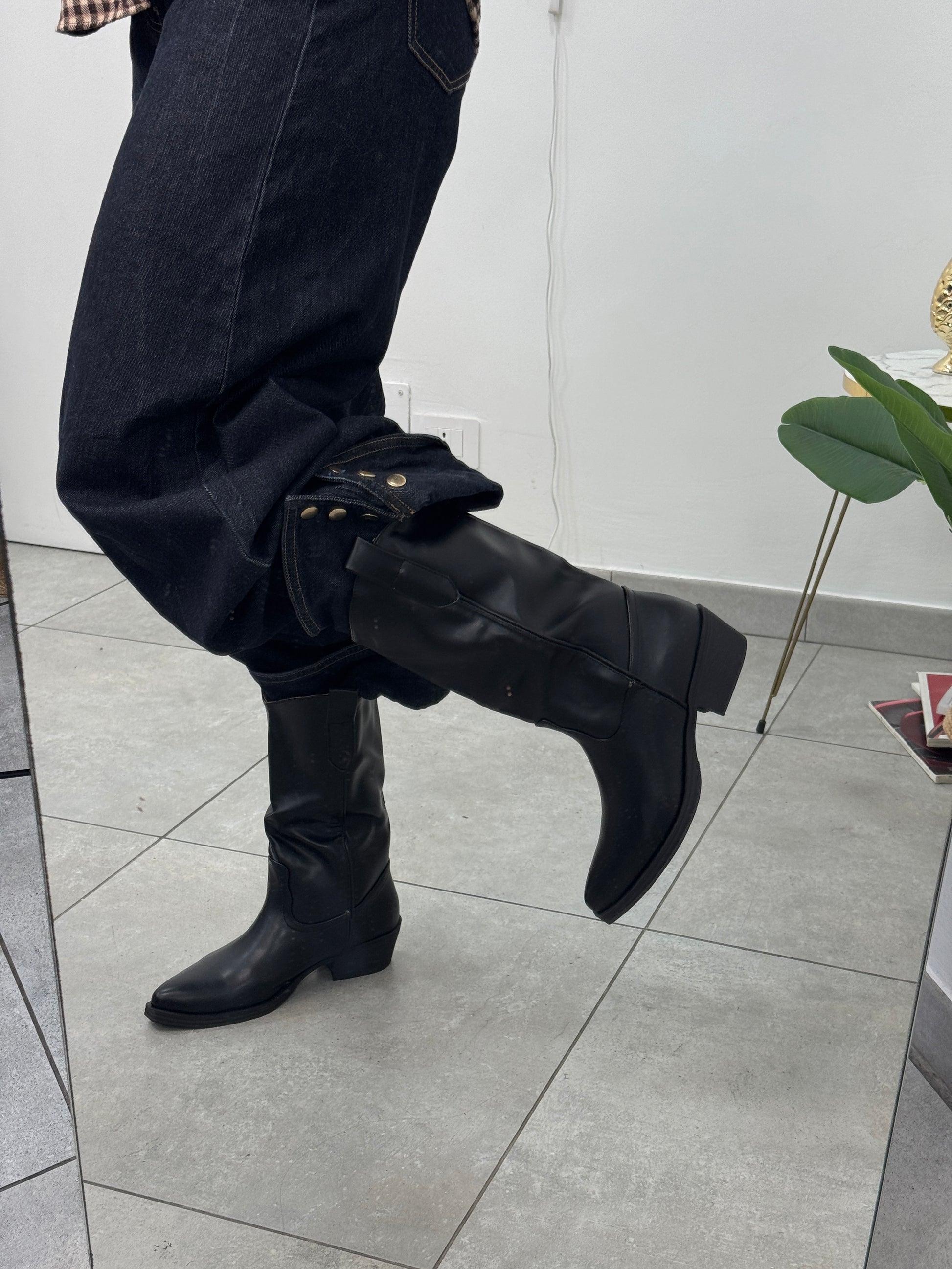 Stivali texani ecopelle bassi con tacco circa 4 cm.