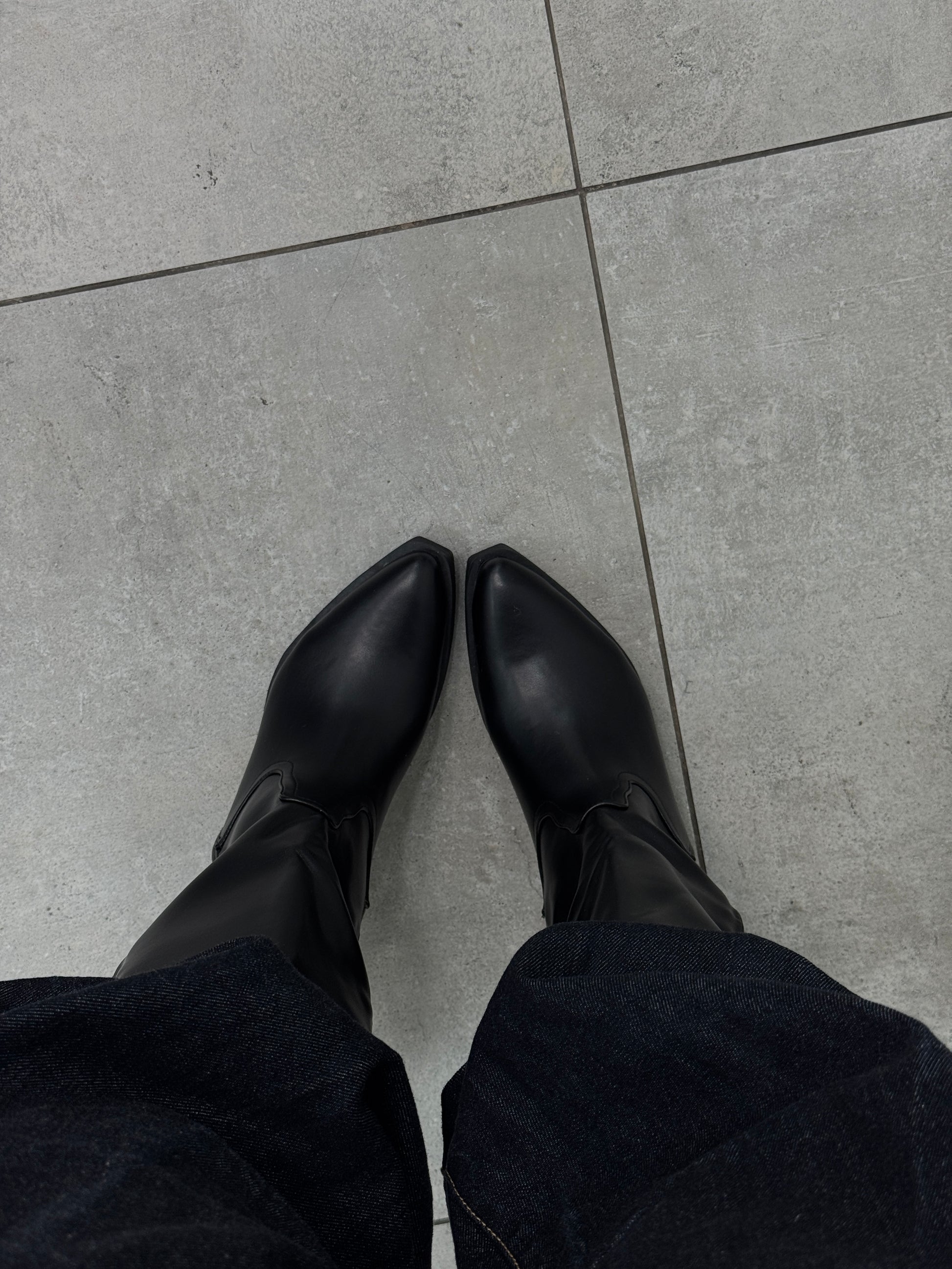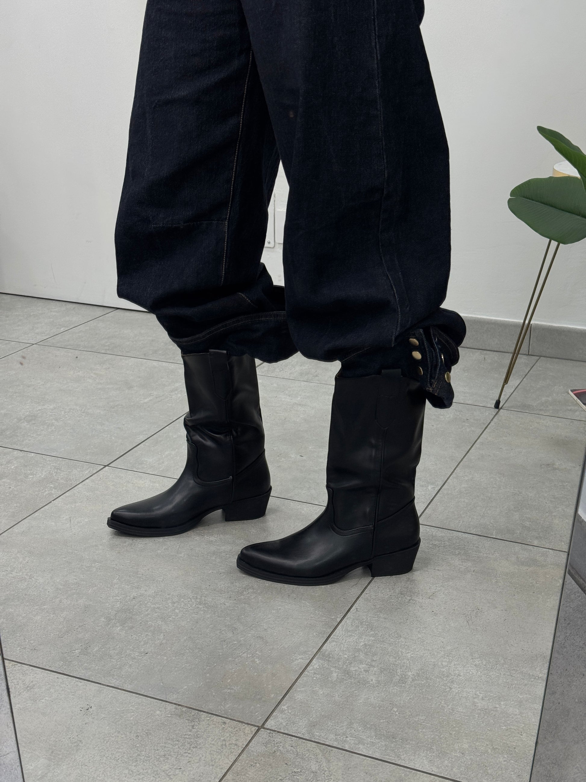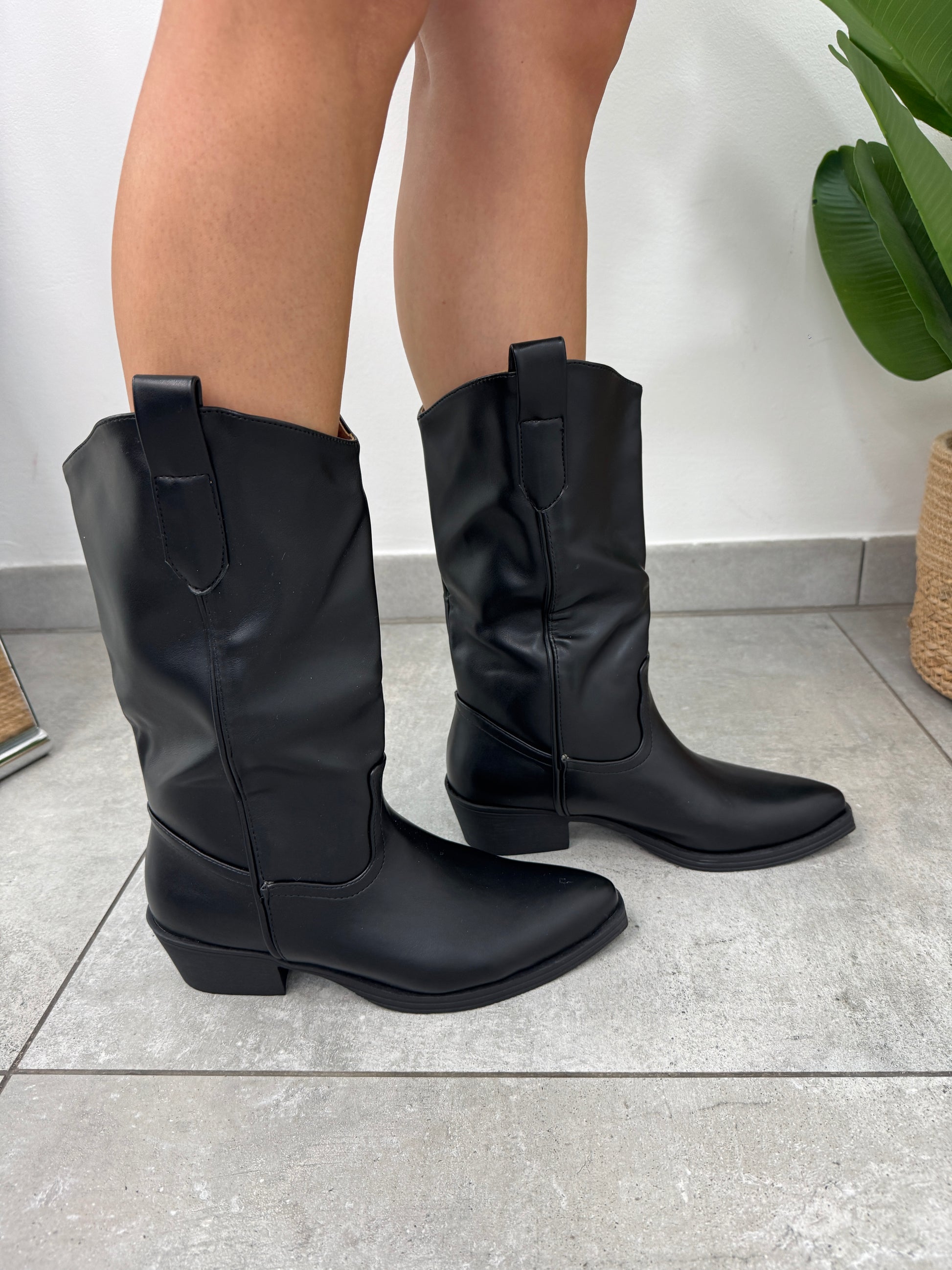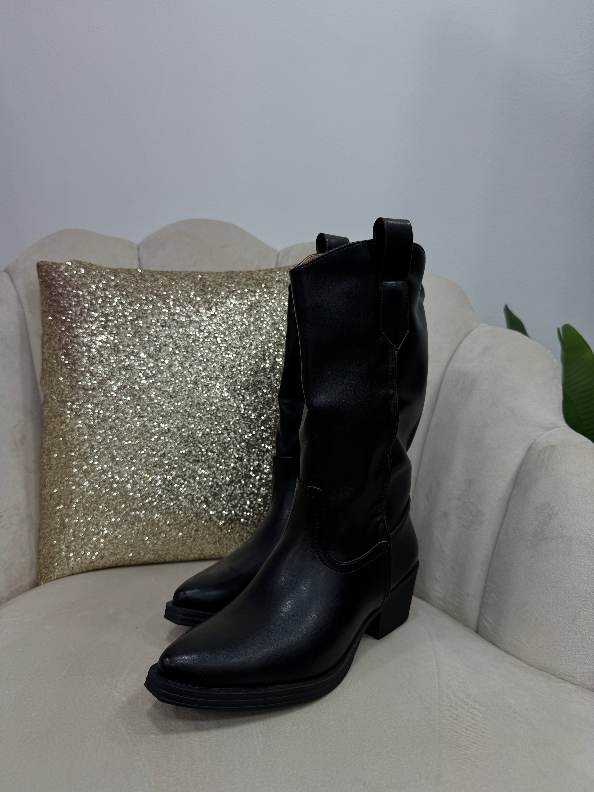 Stivali texani ecopelle bassi con tacco circa 4 cm.